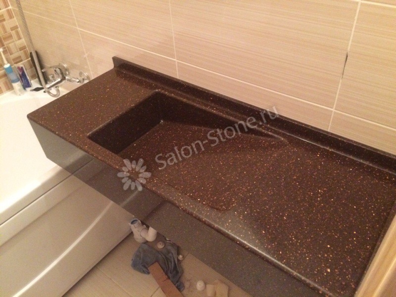 Столешница для ванной темного оттенка с вкраплениями из камня Akrilika