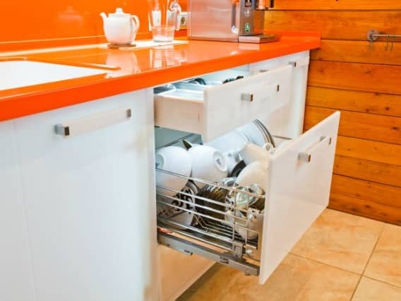 Яркая оранжевая столешница для кухни из камня
